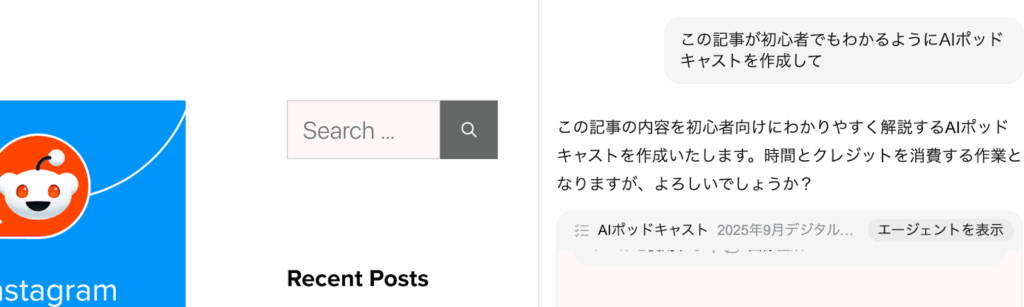 「この記事が初心者でもわかるようにAIポッドキャストを作成して」