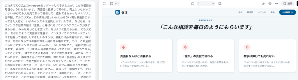 LP制作をAIでやりたい!と思う方の悩みとしてかなりある気がしています(ぼくたちもずっと困ってました汗)